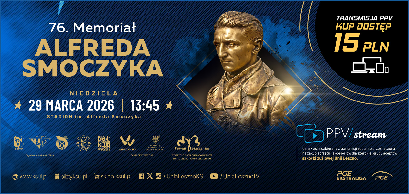 Cała kwota uzbierana z transmisji LIVE zostanie przeznaczona na zakup sprzętu i akcesoriów dla szerokiej grupy adeptów szkółki żużlowej Unii Leszno.